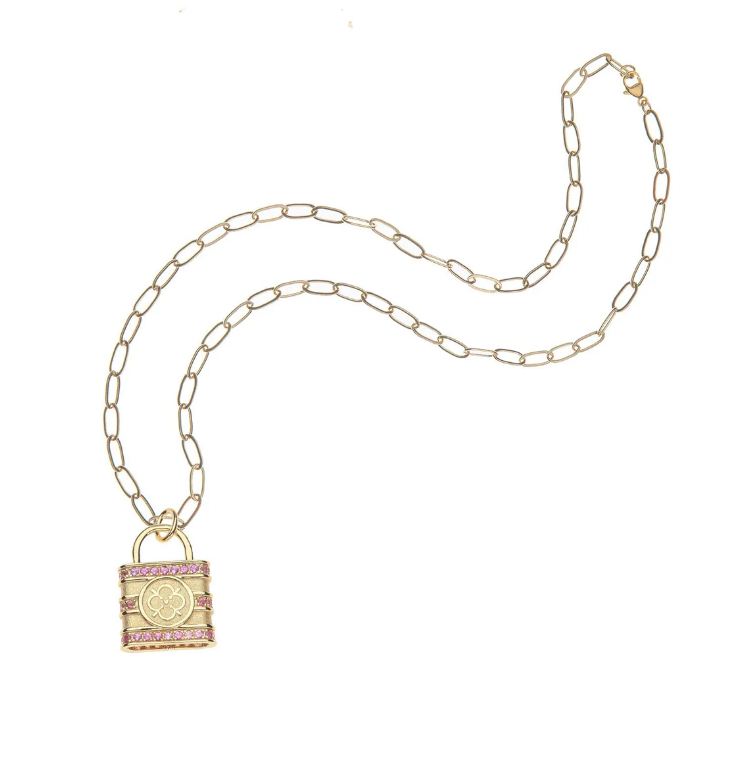 Gold plated necklace with pink stones