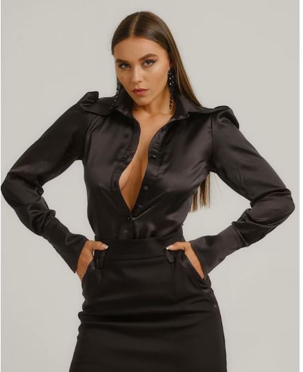 This black fitted satin shirt is the embodiment of sophisticated opulence. Expertly constructed using quality materials and exceptional craftsmanship, it has a comfortable and modern aesthetic that makes it a refined addition to any curated wardrobe.