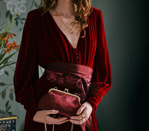 Be the first to review “Victoriana Embroidered Burgundy Satin Clutch Bag”